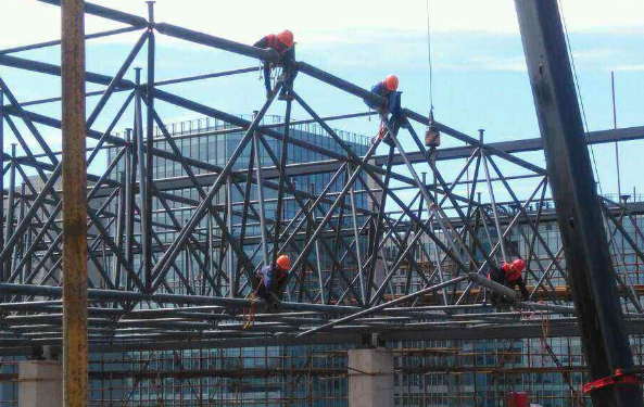 在网架结构中应用的钢球、钢筋以及其他根底构件需要被抬到桩架脚手架的平台上。在货架平台上严禁一次堆放很多的备用构件。装配吊装时,应纵情许增加脚手架平台上的把持人员。在失常把持过程中,脚手架一跨内不患上超过1人。